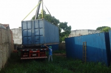 Nova frota de containers na medida de 4,0 comprimento x 2,0 largura x 2,10 altura, tipo almoxarifado, todos em ótimo estado de conservação, chapa 14 com três cadeados na porta.